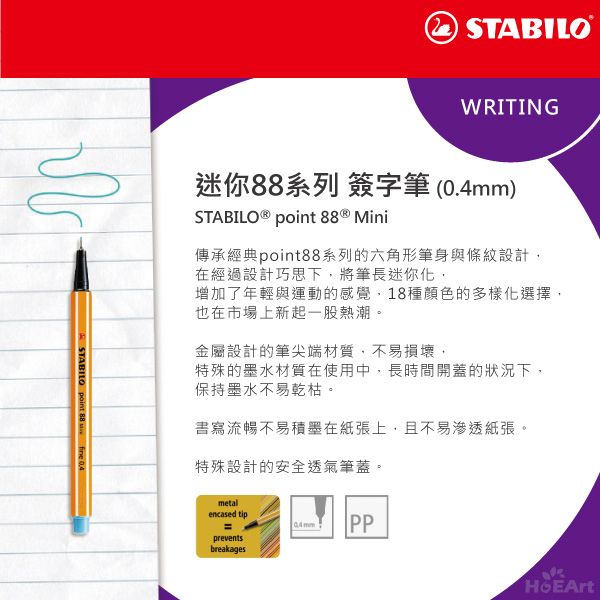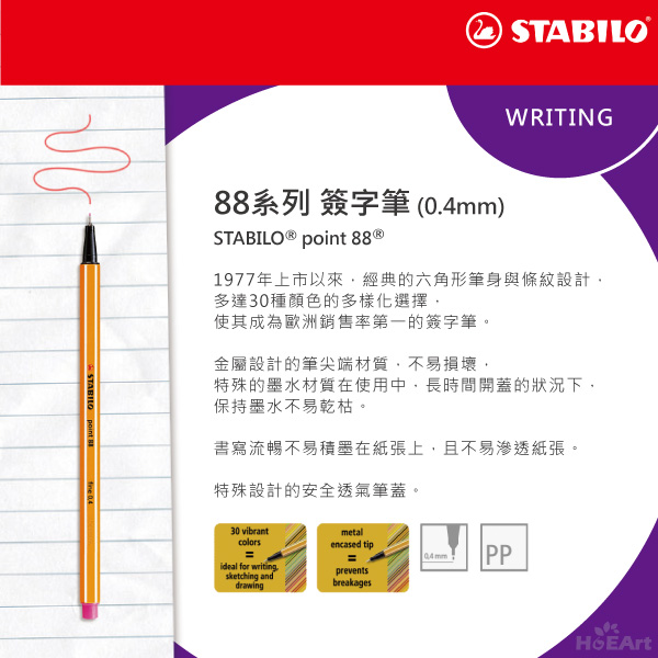 STABILO在歐洲近200年的盛譽,本著開拓的精神,不懈的研發和開創,嚴格控管品質,滿足在書寫上不同需求的我們。
