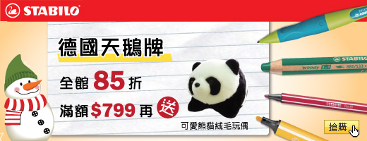 【聖誕節】德國STABILO,全館85折滿額在贈熊貓玩偶