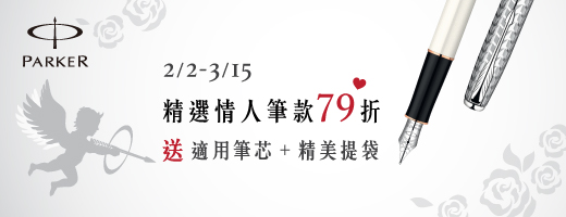 PARKER精筆,情人節好禮。活動優惠79折,附贈精美提袋。