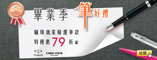 歡慶畢業季,PARKER&Caran d'ache商品優惠79折起。筆不僅是個動態配件,書寫時的揮動,能散發出個人特質,更能透過它傳遞訊息。職場就業,生崖轉職是不可或缺的,一支好的筆,也能讓心情愉悅,工作好運更加倍。