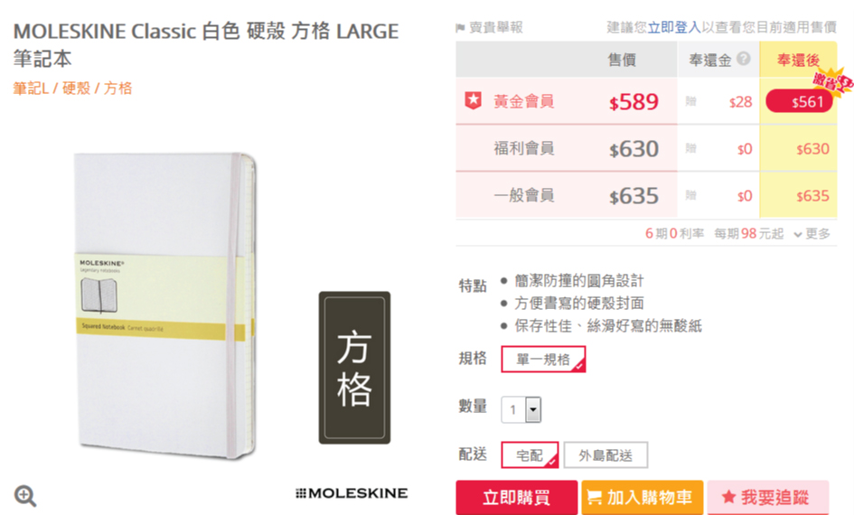 加倍奉還 搜尋 MOLESKINE,現金立馬折抵,省更多